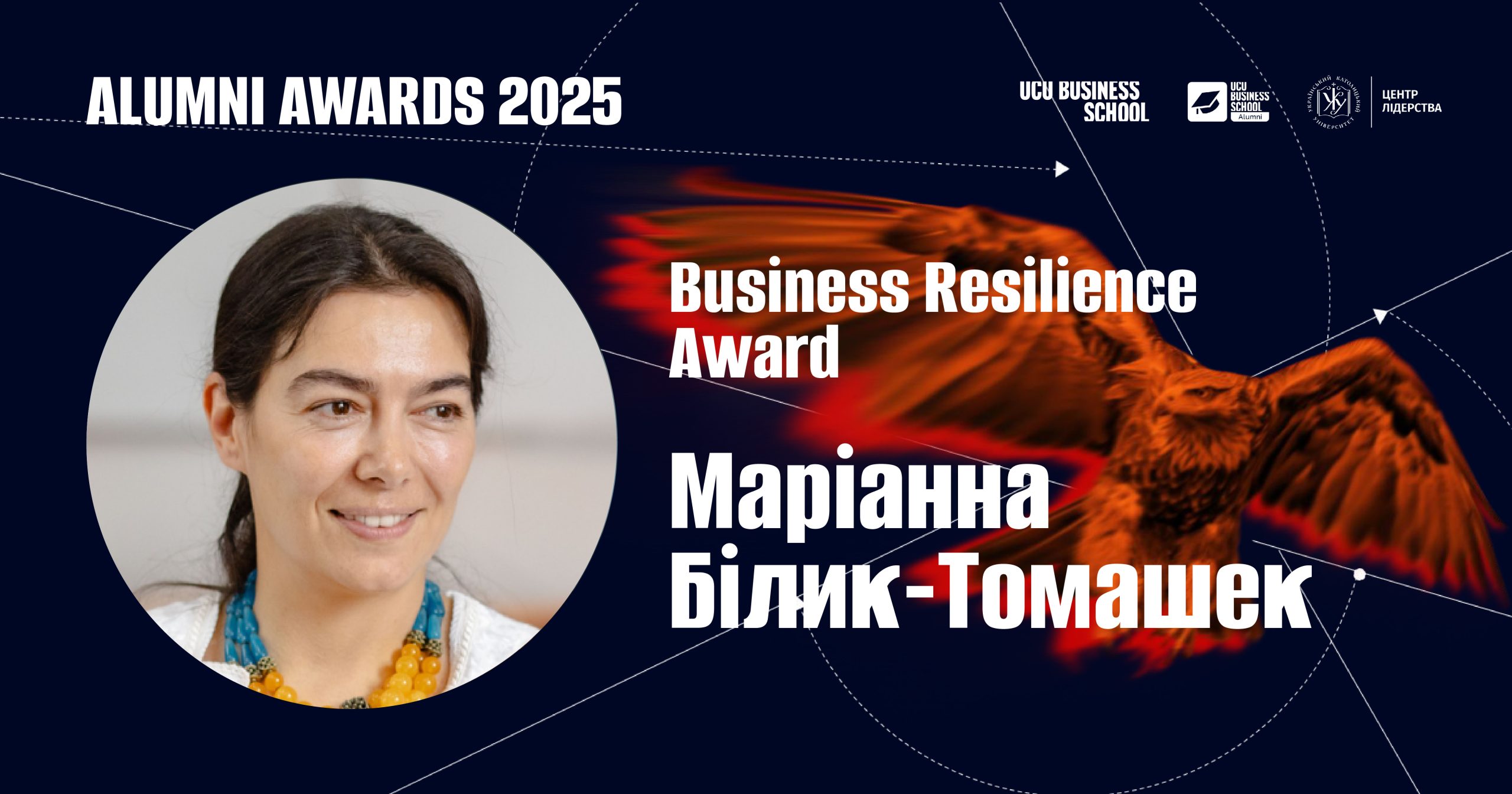 Award recipient: Marianna Bilyk-Tomashek — graduate of the Key Executive MBA program (2024), co-owner, founder, and CEO of BISH company, and head of the public organization Dental Front, which aims to reform dental care in the Armed Forces of Ukraine.