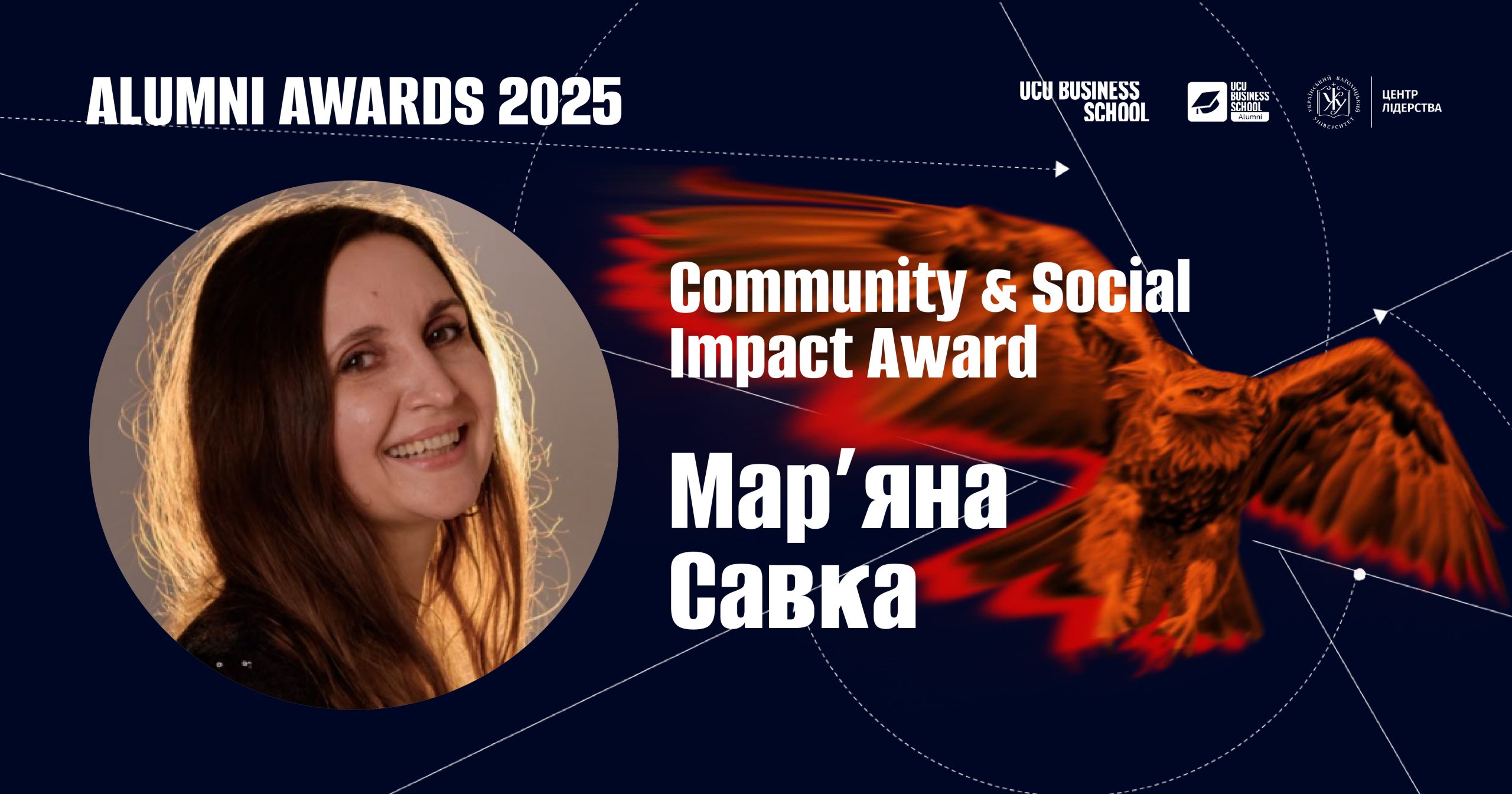 Award recipient: Mariana Savka — graduate of the Key Executive MBA program (2025), founder and editor-in-chief of The Old Lion Publishing House.