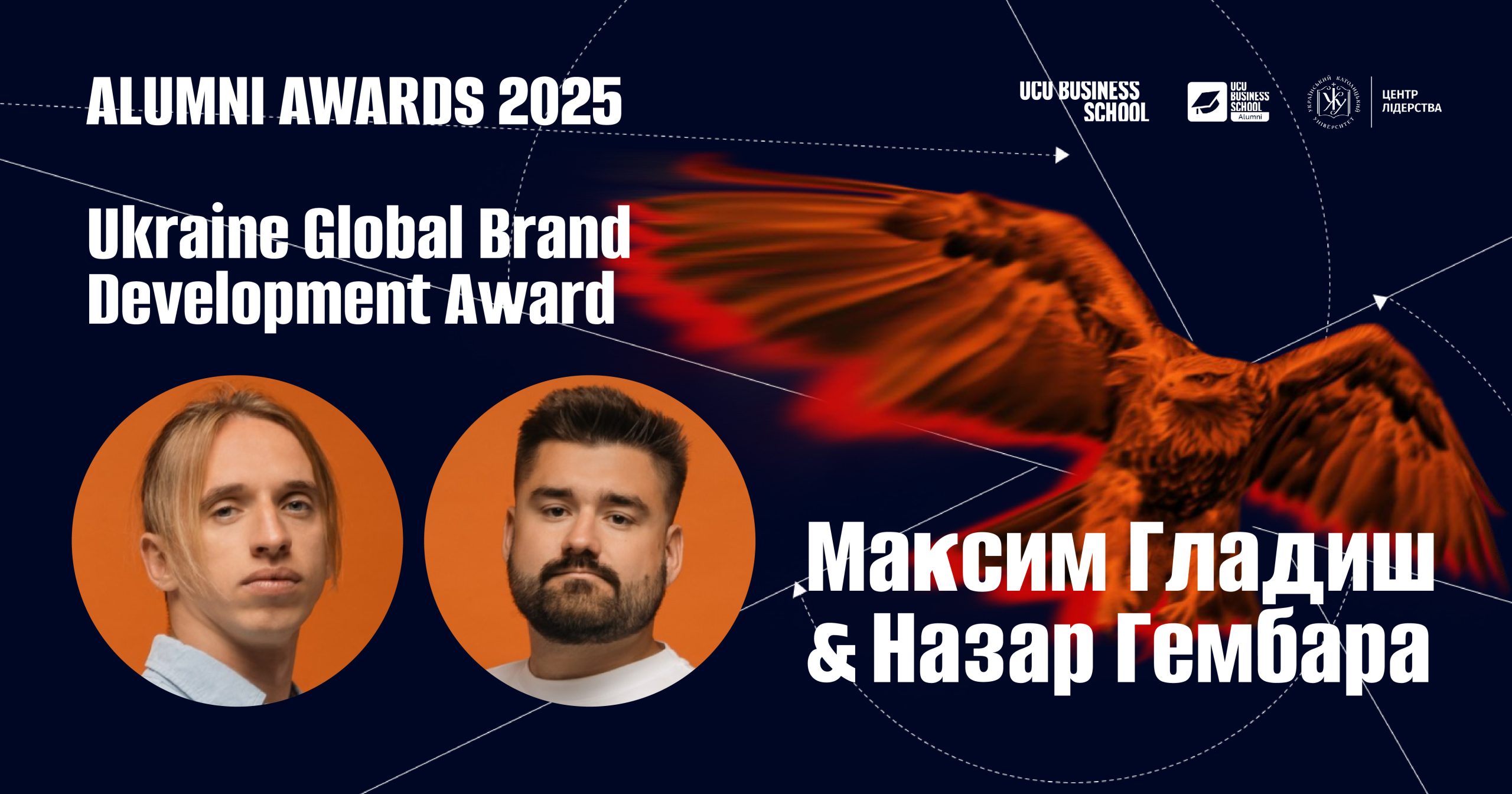 Award recipients: Maksym Hladysh and Nazar Hembara — graduates of the MSc in Technology Management program (2024), co-founders of BotsCrew.