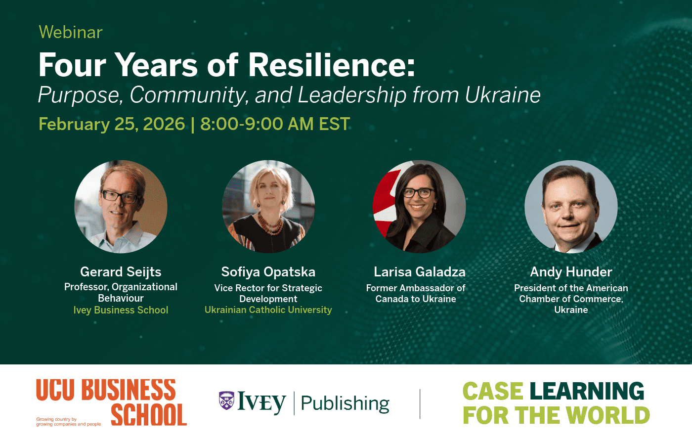 Сесія побудована навколо презентації нового кейсу Ivey Publishing «A Bombed Gas Station in Korotych, Kharkiv Region: The Spirit of Ukrainians Exemplified». У ньому розглядається, як сенс, спільнота та адаптивне лідерство допомагають організаціям відновлювати операційну діяльність, залишатися функціональними та підтримувати людей під час кризи. Окрему увагу приділено ключовим урокам формування стійкості, зокрема ролі сенсу та збереженню зв’язку через спільнотні хаби.