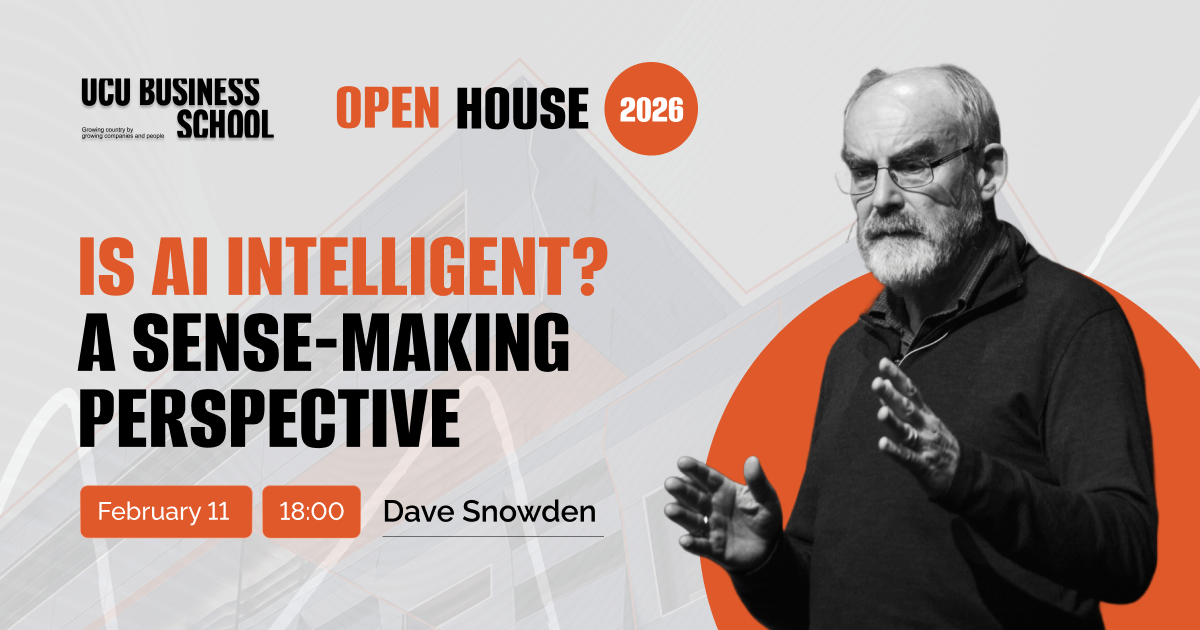 Бізнес-школа УКУ запрошує на подію «Is AI Intelligent? A Sense-Making Perspective», яка відбудеться 11 лютого в межах Open House 2026. Поговоримо про те, як насправді варто мислити про штучний інтелект: без хайпу й апокаліптичних сценаріїв, але з розумінням складності, контексту та ролі людського судження. Подія для тих, хто працює з рішеннями, стратегією та невизначеністю — і хоче тверезо оцінювати можливості й межі ШІ.