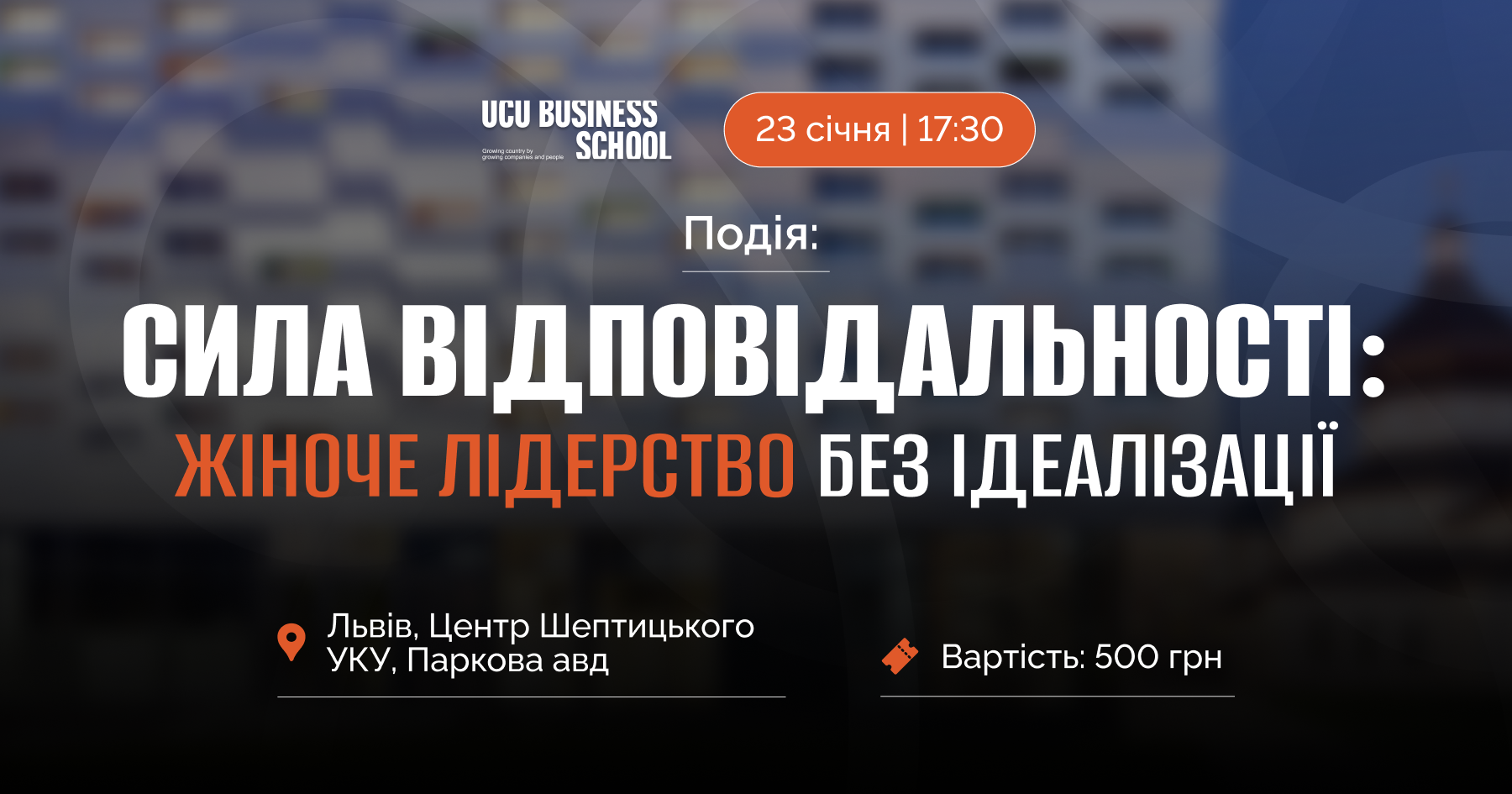 Бізнес-школа УКУ запрошує вас на подію, присвячену жіночому лідерству — не як ролі чи статусу, а як відповідальності, вибору й дії. Поговоримо про лідерство без посад, подвійні стандарти, складні рішення та шлях, який часто не планують, але який доводиться пройти. Це подія для тих, хто керує, впливає або лише входить у зону відповідальності — і хоче мислити про лідерство глибше, чесніше й зріліше. Без ідеалізації, але з повагою до досвіду, помилок і рішень, що мають вагу.