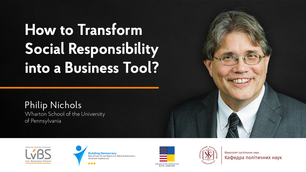 Львівська бізнес-школа УКУ запрошує на бізнес-сніданок «Як соціальну відповідальність перетворити на бізнес-інструмент?» із Філіпом Ніколсом, професором бізнес-школи Університету Пенсильванії (The Wharton School at University of Pennsylvania).