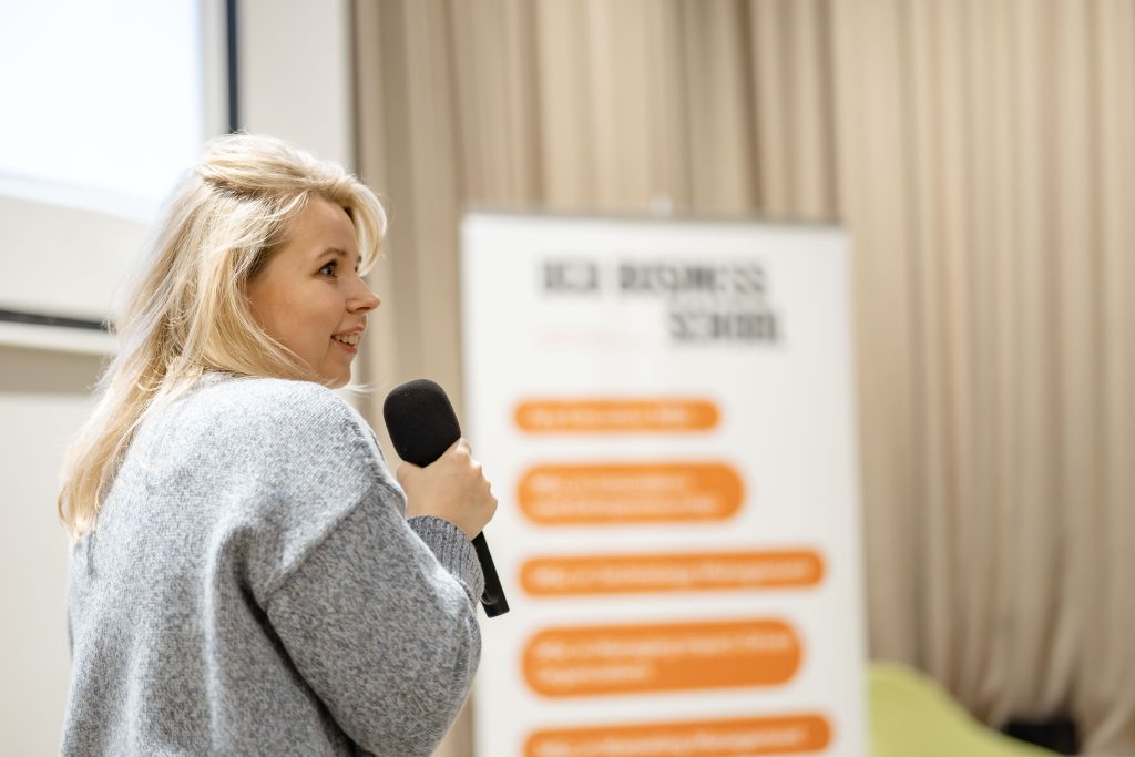 Про коноплярство, проєкт «Євген Клопотенко» та те, що жінки можуть бути рушійною силою великих змін, як у бізнесі, так і в суспільстві ділилась на зустрічі, організований Бізнес-школою УКУ й присвячений темі жіночого лідерства, Олександра Фідкевич.