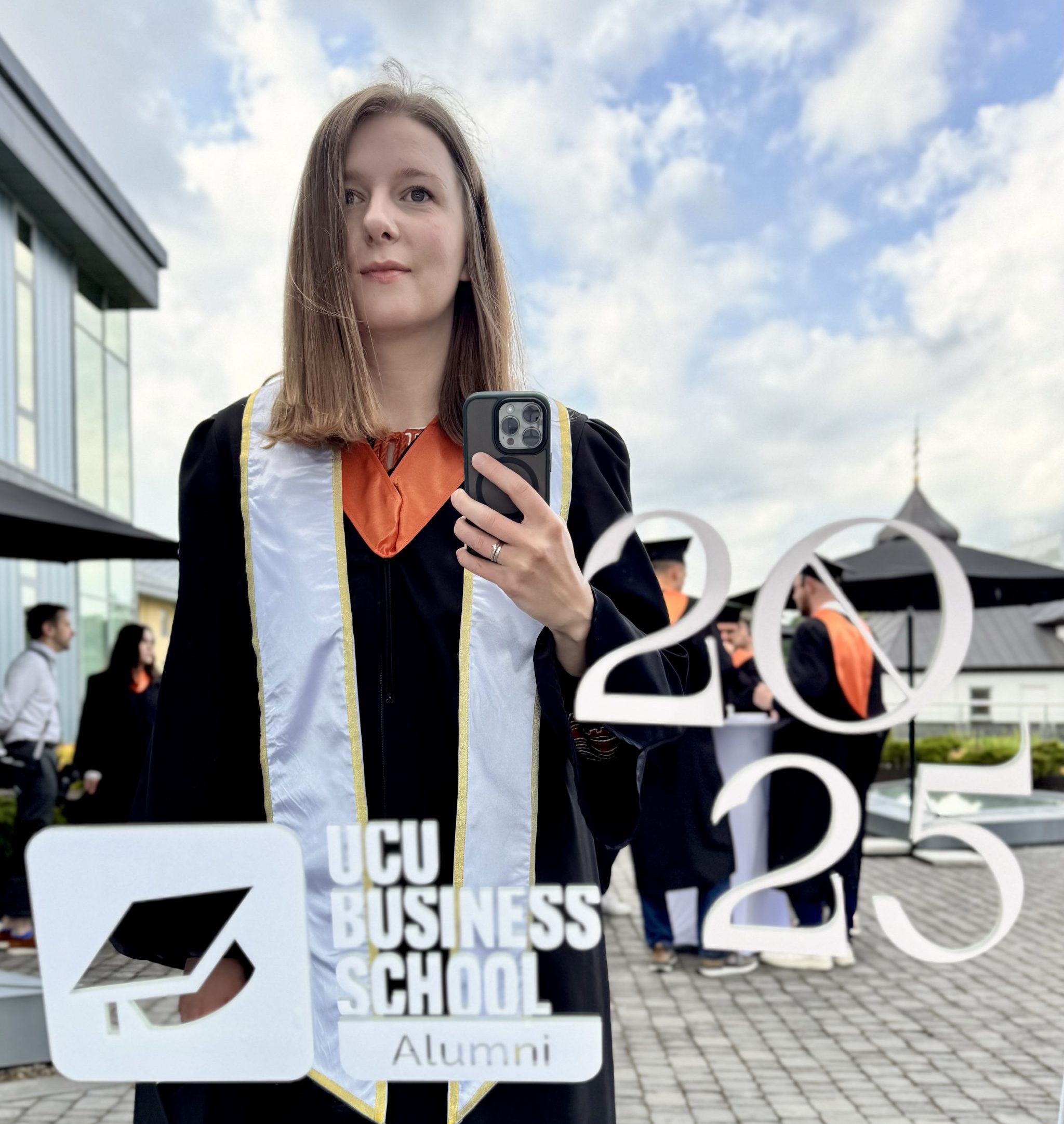 «До навчання мій маркетинговий світ був дуже вузьким: я знала лише те, що знала, і постійно намагалася “зловити власні хвости” замість того, щоб стратегувати. У Бізнес-школі УКУ я усвідомила хаотичність своїх знань: у мене було величезне поле з окремими бульбашками інформації, які ніяк не складалися в систему. Саме навчання допомогло мені структурувати ці навички та перетворити їх на чітку стратегічну модель, де кожен крок став свідомим, а не просто інтуїтивним», – розповідає вона.
